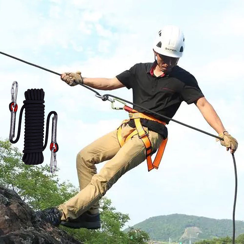 【Easy to Use】Features a smooth, quick-lock carabiner mechanism and tangle-free rope design for efficient and hassle-free climbing preparation.